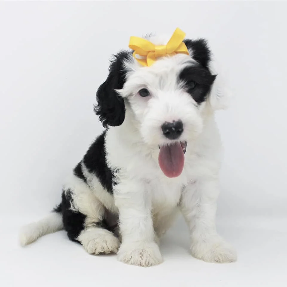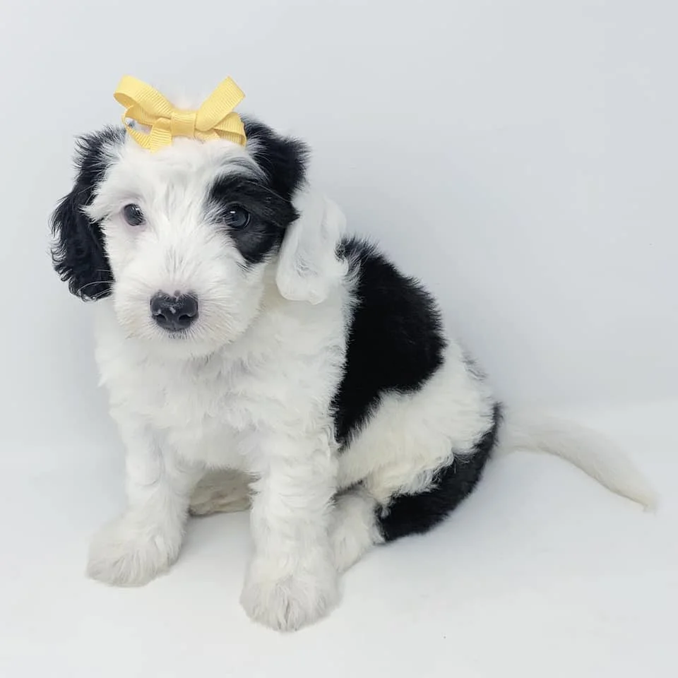 Patch will join the Lewis Family in Missouri!Mini-Sheepadoodle, Female, Black & WhiteClick here to fill our our Puppy Application